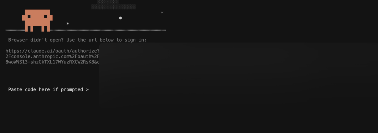 上記を選択すると、ブラウザのリンクが表示。こちらにアクセスしAuthentication Codeをコピーしてターミナルに戻り貼り付けるとログインできる