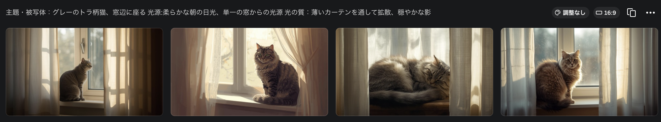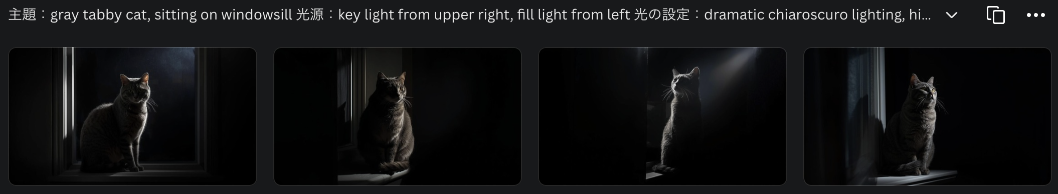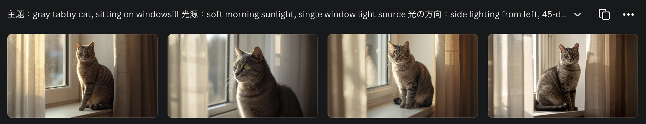 主題・被写体や背景、環境を冒頭に置きつつ、具体的に構造化して依頼する。その上で、必要に応じて光源や画風を指定する