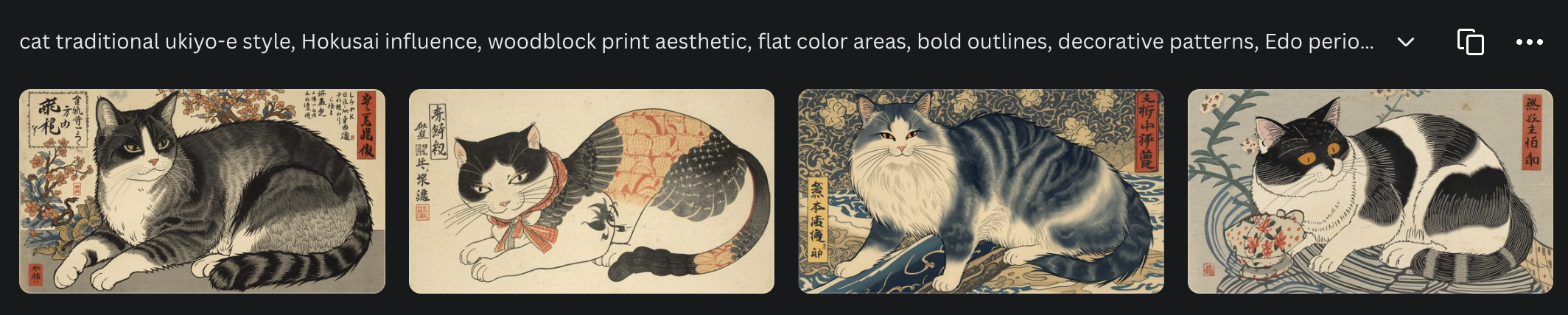 - 効果: 様式化された優雅さ、装飾的な調和、日本的な美意識