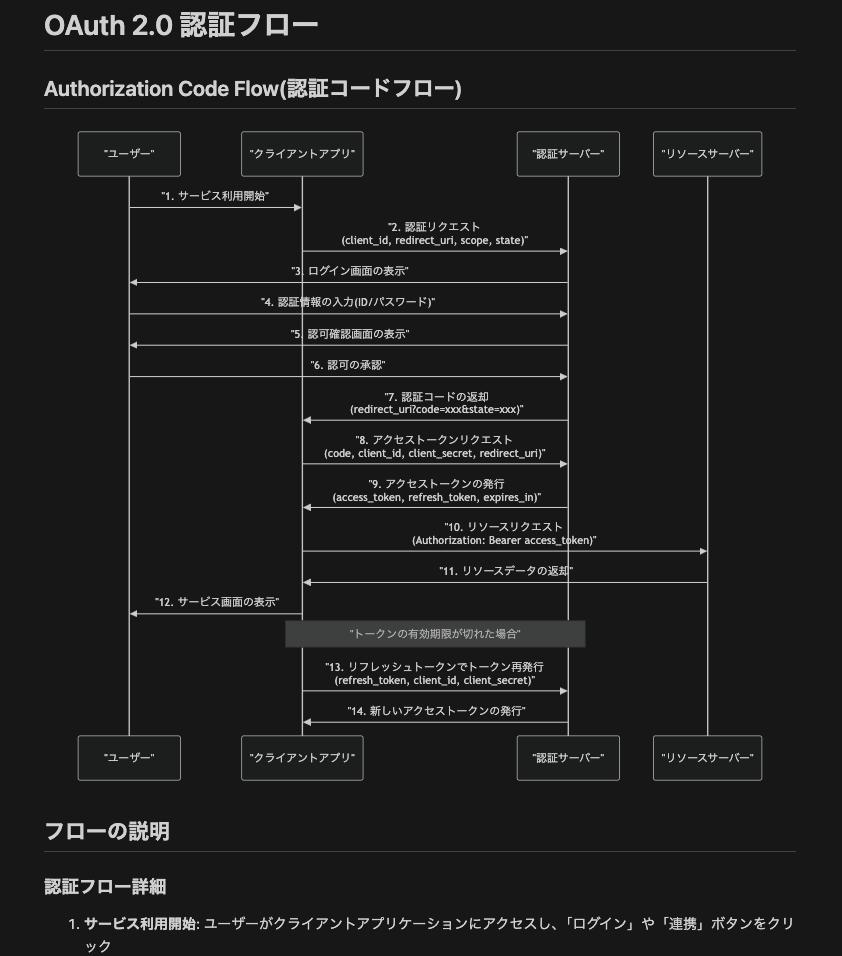 具体例として、OAuth 2.0認証フローのシーケンス図作成コマンドを見てみよう。